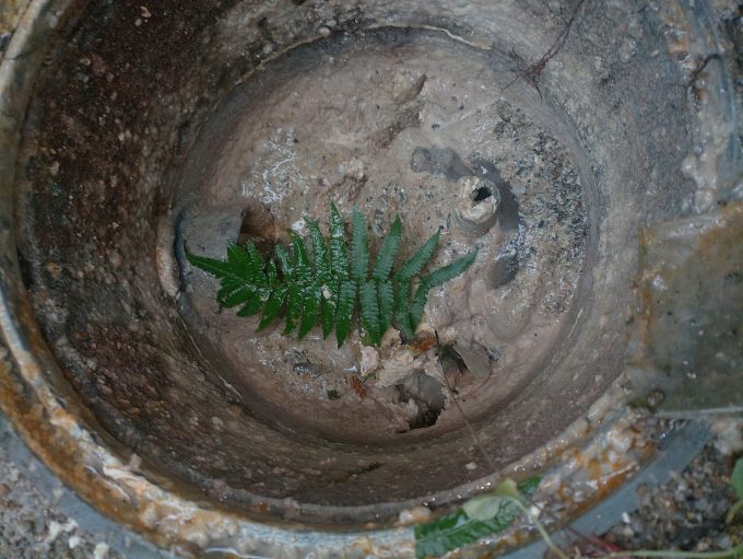 台所の水が流れなくなっており、外の油マスを点検したところ、油が大量に固まっていて水の通り道を塞いでいる状況でした。