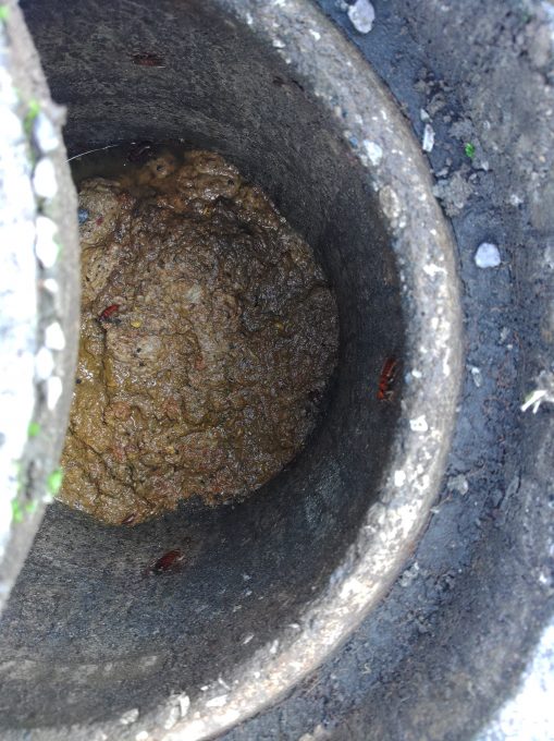 確認して外のマスを開けると、汚水がパンパンに詰まっている状態でした。